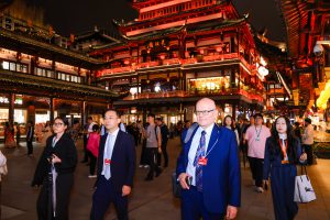 在湖心亭茶楼,一行见证“考古级勘察+非遗工艺+现代监测”如何让古建焕发新生,重现“海上第一茶楼”的风致;在豫园老街,他们行走于飞檐斗拱之间,尽赏百年街市生生不息的商业底蕴;在黄金广场与老庙景容楼店,嘉宾了解到大豫园片区如何在保护历史风貌的同时,打造“国际时尚珠宝功能区”,构建文化与产业融合的城市样本。