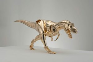 空山基描绘的人物、动物以及恐龙等机器人作品,呈现了超越生物身体性的未来假想故事。我们通过他的作品,幻想现有生命体与机械文明融合的未来世界美学。 在空山基的作品中,人的智能是什么?身体是什么,以及时间是什么等主题相互交织,自然而然地刺激了我们的想象力和创造性。 人类的科学技术是否会带来超越身体极限的永生,未来人工智能是否会与人类共存?空山基的作品或许也提出了这样的问题。