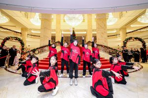 步入酒店大堂,圣诞气息扑面而来:缀满星光的圣诞树璀璨夺目,酒店吉祥物 “贝瑞熊” 在入口处热情迎接每位来宾,萌趣互动瞬间拉满节日亲切感。活动现场,来自诺达双语国际学校的学子们,倾情献上活力四射的舞蹈表演与清新灵动的尤克里里演奏。童真的演绎赢得全场阵阵掌声,为仪式注入满满暖意。