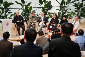 在对谈环节中,中央美术学院教授张立辰、中国艺术研究院博士生导师、中国国家画院院委姜宝林、复旦大学艺术研究院院长潘公凯、朱颖人先生家属朱锷老师、吴永良先生家属吴洪晖老师与紫苑书院院长胡萍老师共同探讨了“如何继承课徒授业老传统?”这一问题。