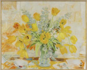近年来,越南艺术市场发展迅速,黎谱作品亦备受瞩目——其拍卖纪录前五高价均于过去三年内创下,足见该门类已在国际舞台站稳脚跟,并持续焕发光彩。本次呈现的《构图》与《黄色郁金香》均属艺术家创作生涯中极为典型的“芬尼时期”。该时期得名自1960年代初期代理其作品的威利·芬尼画廊,作品普遍色彩明艳、结构有序,画面洋溢着愉悦轻松的氛围。《构图》一作中,黎谱以流畅的笔触驾驭光影与色彩,在自然主题中凝练出静谧之美,充分体现其融合越南审美与后印象派技法的成熟风格。另一亮点《黄色郁金香》则为静物题材注入盎然生机,艺术家以温暖柔和的背景托衬出花瓣的明丽色泽,借助精湛的色彩控制,传递出对花卉短暂之美的诗意礼赞。