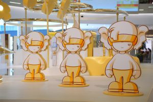 Marsper静坐在简约白王座上,头顶三个圆圈交叠交织成图腾,顶端点缀星瓣,星辉与花瓣在光中交融。光影、图腾与Marsper交汇,仿佛沉入爱与魔法交织的梦境,成为这场潮流之旅的见证者。这里陈列着多款经典Marsper展品,涵盖品牌联名款、大师款、限定款等多个系列。