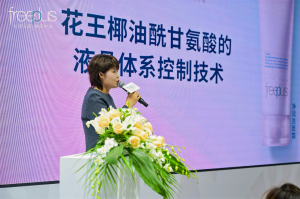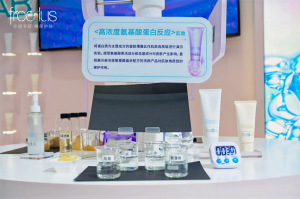 在其发表的《氨基酸技术在清洁体系中的创新研究与应用》主题演讲中,详细介绍了品牌基于氨基酸技术的三款洁卸产品创新,并在另外两位研究员的现场实验配合下,动静结合地生动呈现了氨基酸技术的含“净”量。其中,“高浓度氨基酸蛋白质反应实验”直观地为现场观众展示了氨基酸系晶析配方对肌肤角质层的保护作用,从而体现芙丽芳丝氨基酸系洁面的“温和洗净,不易对肌肤角质层造成伤害”的产品特性。其中,净澈控油洗面霜就是在此基础上,首次将天然微米级赤岩火山泥与88%高浓度氨基酸表活Ⅰ复配,并通过双甘油成分降低体系热敏感性,解决了高温环境下的配方稳定难题,成为了氨基酸配方上的一次成功革新。而“氨基酸系油彩妆融合实验”则展现了其进博首秀新品——氨基酸系净润精华卸妆油“秒速Ⅲ溶妆,温和无负担且高效卸净”的硬实力。