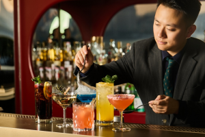 由酒店首席调酒师Season Wu领衔,演绎对调酒艺术的极致追求。“重生汽饮” 以班兰朗姆的东南亚风情,碰撞接骨木花的清雅,象征着经典的焕新。最具代表性的 “海鸥衔花” ,是向上海弄堂记忆的致敬,金酒中融入上海人钟爱的白兰花香气,蓝橙赋予其海洋般的色泽,顶部绵密的泡沫犹如浪花,一只“海鸥”仿佛衔花飞过浦江。“绿竹‘麻’斯帕” 则以大胆创意,将竹叶金酒与中国青花椒结合,带来东方草本与西式配制酒的惊喜碰撞。