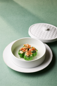 选材考究,是对春天味道的极致追求。东港“海洋红宝石”樱花虾,只在樱花盛开的季节捕捞,鲜美中带着淡雅樱香;搭配“春季第一鲜”的嫩绿春韭,为馅料增添大地清香。面皮采用粤式传统技艺,薄如蝉翼、韧如丝绸,呈现翡翠般的春日生机。整只樱花虾与猪肉、韭菜巧妙结合,蒸制后皮弹汁鲜、虾酥味美,入口是柔韧、清香、丰腴与酥脆的交织,如同一封热气腾腾的春之邀约。