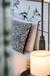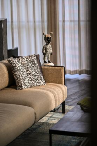 这一艺术构想亦延伸至上海居舍,Juan Díaz-Faes为其精心设计的Studio 90艺术套房,可谓一座宜居的艺术典藏空间。通过壁画、艺术贴纸、定制枕头、沙发靠垫、床尾巾乃至睡袍等细节,这一宜人空间将艺术美学与待客之道融入颇具个人特色的环境中,为旅客打造沉浸式的住宿体验。