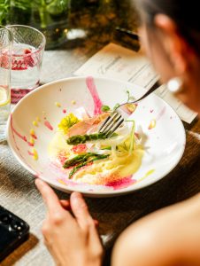 干式熟成马友鱼配茨菇及烤树番茄