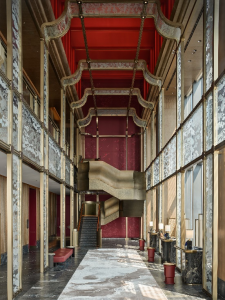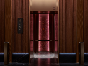 电梯轿厢亦暗藏巧思:灵感源自古典轿辇,以考究的木艺、温润的锦缎和精巧的真丝刺绣,复刻出那份独有的尊贵与仪式感,于起落之间,尽显现代东方的匠心风骨。