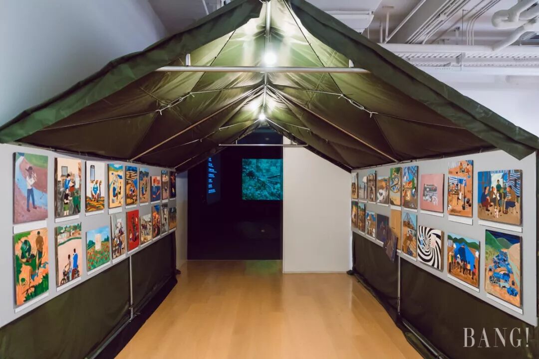 再往里走,有一条漫画走廊。走近细看你会发现,这是艺术家亲自去了难民地回来之后,通过文字、访谈、摄影、绘画的方式对当地现状进行了调查和了解。