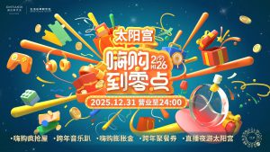本次活动通过丰富的场景与内容协同商户,共同营造“跨年欢聚+夜间嗨购”的沉浸式氛围。现场将推出 “跨年音乐趴”、“嗨购疯抢屋”、“不打烊狂欢促”及“直播夜游太阳宫”等四大主题板块,打通线上线下,引爆跨年之夜。