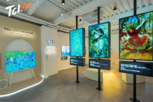 不仅如此,TCL A300系列第三代艺术电视更是全球第一批搭载AI绘画大模型的艺术电视,可在3秒钟内生成一幅专属定制的艺术画作。其搭载的哑光显示、抗强光反射的TCL华星艺术画布屏,更能高保真还原世界名画的笔触、线条,演绎科技与艺术的碰撞质感。此外,置身「艺术五感」展区,观众也可以领略到搭载了TCL华星星曜屏的TCL115吋X11G Max电视所带来的视觉体验。