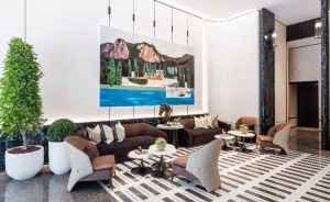 图二:西岸中环汇大堂以现代艺术设计语言构筑开阔空间,流畅的线条与光影交织,营造出兼具温度与仪式感的归家体验。