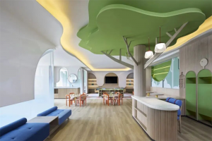 酒店二楼还设有亲子中心。早餐区域也特别设置了儿童餐桌和低矮餐台,让小朋友能够自己取餐,并在员工帮助下体验自助氛围。未来,我们还将引入酒店吉祥物——一只可爱的青蛙,并推出相关伴手礼。每天早餐时,还会有三只青蛙人偶与孩子互动,陪伴他们游戏和拍照,营造轻松欢乐的家庭氛围。