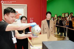 结束致辞后众人移步进入展厅,迎来开幕式备受期待的开箱与入柜仪式,这不仅是博物馆典藏部与展览部交接的重要环节,更是整个展览布展过程中的关键时刻。