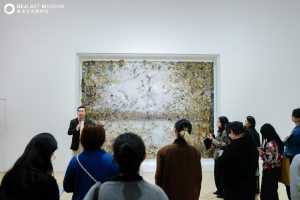 开幕式的最后,艺术总监申舶良为开幕式嘉宾展开深度导览,系统阐述了展览的策展理念、重点作品的创作背景、以及作品之间的内在关联所构成的叙事脉络,引领嘉宾们共同介入艺术家个人生涯与时代运动的关键转折,并映照创作背后政治、经济、科技与文化的深层变迁。