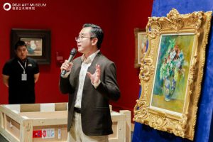作品开箱之后,德基艺术博物馆艺术总监申舶良分享了关于这件作品背后的研究与收藏历程“我们都熟悉雷诺阿是印象派的核心创始人之一,但通过研究我们认为,不应该以‘印象派’一词概括雷诺阿的整个艺术生涯。自印象派鼎盛期之后,他经历过多次转向,发展出了更丰富、更强烈的个人风格。比如我们馆藏的一件、一直在展出的、创作于1885至1890年的《花瓶中的玫瑰》,是艺术史家们公认的雷诺阿所谓‘干燥时期’的代表作品,更着力于用清晰的笔触和稳重的光晕,塑造花的结构和体积感,这其实已经不再是他在印象派鼎盛期那种流光溢彩、温暖欢快的风格,而是受到古典艺术的影响。这在很大程度上改变了人们对雷诺阿的认知。”