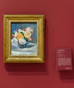 在此次展览中,《瓶中花》中所描绘的马约里卡陶瓶与此作同展,令人想到雷诺阿以瓷器画工起步的艺术人生,亦与展览中的中期作品《花瓶中的玫瑰》呼应,共同构成连贯的叙事。随着重磅展品开箱与入柜,标志着展览焕新的启幕仪式圆满成功。