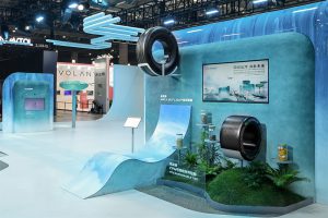 今年进博会,米其林以中国水墨与山河意境为设计灵感,融合未来科技感,首次以复合物为核心叙事,将抽象的复合物科技转化为可感知、可互动的沉浸式创新体验。展台从轮胎的五种核心材料出发,提炼出五色印记,既象征材料性能,也呼应山河意象,材料的精密融合铸就轮胎这一终极复合物;自然元素的壮丽交融,融绘成永续山河的壮阔画卷,传递米其林对可持续发展的坚定承诺。