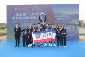 混合八人单桨有舵手组别冠军——马来西亚敦胡先翁大学颁奖