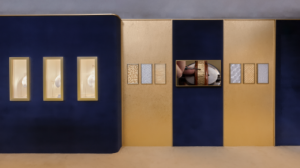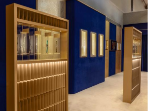 这一主题作为PIAGET伯爵一以贯之的精神内核,在此化身为一场穿梭于时空的创意对话。展厅以熠熠闪耀的暖金色为主调,缀以深邃的伯爵蓝,在复古光影与现代美学的巧妙结合下,营造出既摩登又经典的沉浸氛围。