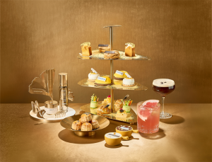 重庆尼依格罗酒店于2025年11月1日至12月10日期间,携手法国高科技植物精萃品牌希思黎,于酒店大堂吧悦廊推出「鎏金焕臻」主题联名下午茶,共同打造一场奢韵悠然午后时光。