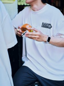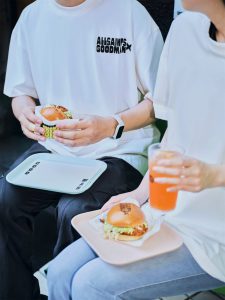 这件联名T恤的诞生,源自两个品牌对可持续发展的共同追求。ALLSAINTS从东伦敦的创意土壤中汲取灵感,将2025夏季系列”自由无界”的设计语言注入其中。采用100%全棉与再生面料制成的T恤,既延续了ALLSAINTS标志性的英伦剪裁,又融入了GOODMAN标志性的活力元素。当穿着者在城市街头漫步,或是参与海岸线环保活动时,这件T恤都将成为守护海洋的时尚宣言。GOODMAN则带来充满烟火气的城市温度,并为本次活动特别推出“定制炸虾汉堡”。活动当日,该汉堡的销售金额也将与T恤所得一并捐赠给蓝丝带海洋保护协会,让美味与善意一同延续。