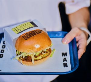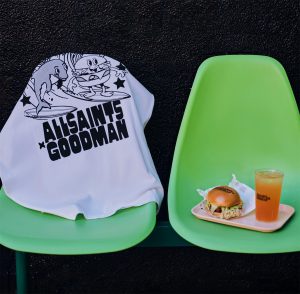(GOODMAN定制炸虾汉堡,当日销售所得将捐赠给海洋保护协会“蓝丝带”)